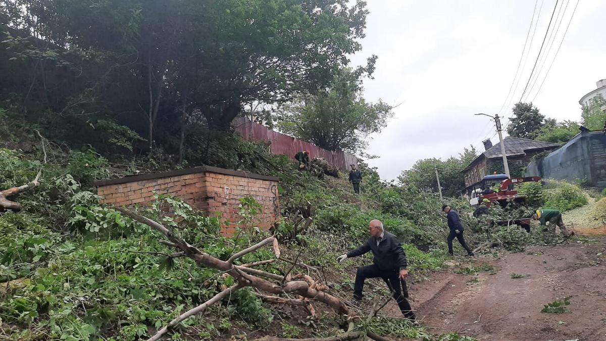 Благоустройство участка Садовой ведут специалисты МБУ «УДТ», префектуры Советского района и МКУ «Техобеспечение». Рабочие вырубают дикорастущие кусты и деревья и расчищают территорию.