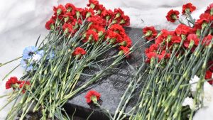 В память о десантниках объявили минуту молчания, прозвучал гимн Росси, а курсанты прошли торжественным маршем. К плите с землей из Аргунского ущелья легли цветы.