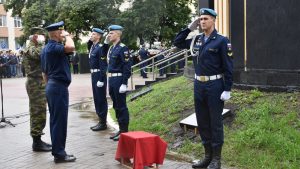 На митинге в основание памятника погибшим воинам заложили капсулу с землей из Мариуполя. Представители региональной, городской власти, ветераны, родственники бойцов возложили цветы в память о погибших. Была объявлена минута молчания. После торжественным маршем прошли курсанты Рязанского десантного училища.
