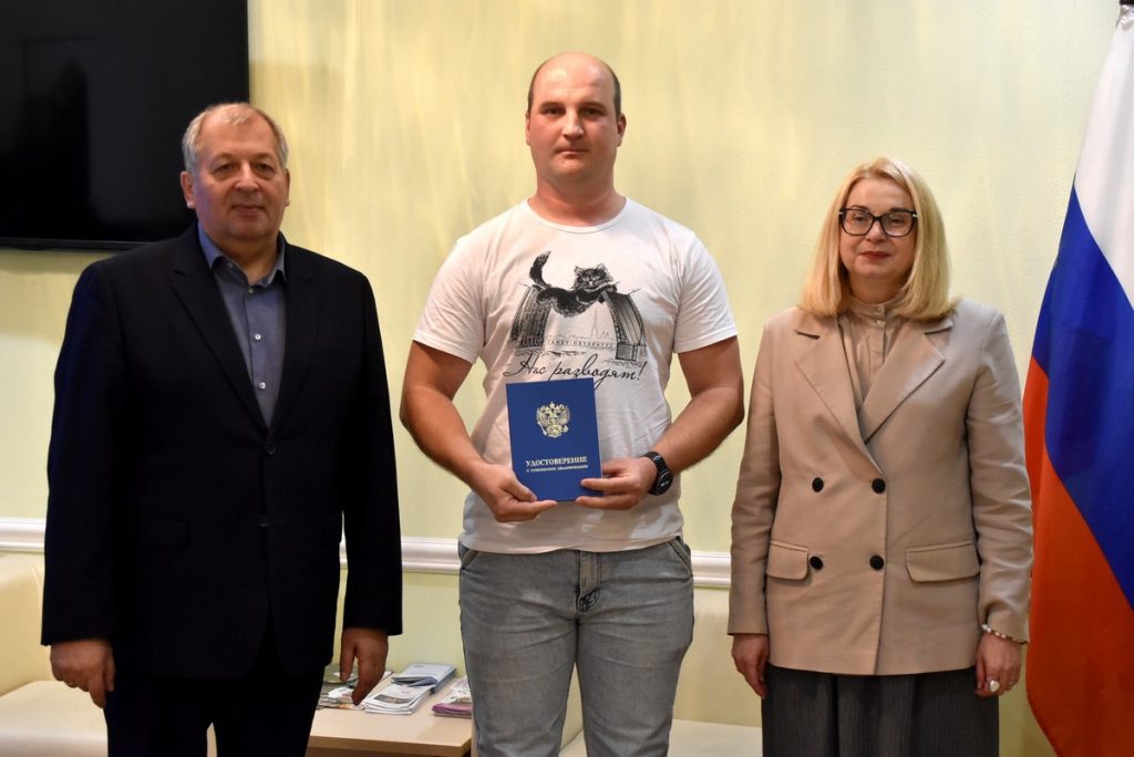 Вручила удостоверения замминистра территориальной политики Рязанской области Наталья Артонкина: