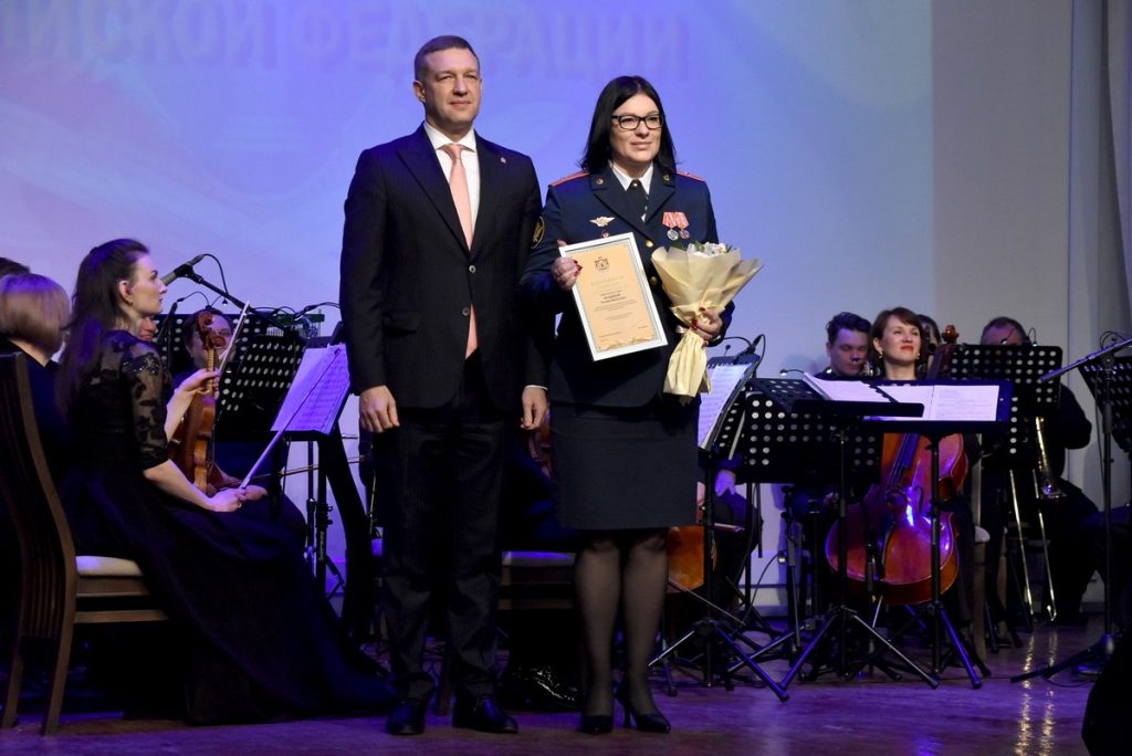 Сотрудникам и ветеранам ФСИН России вручили ведомственные и региональные награды. Для зрителей играл рязанский губернаторский симфонический оркестр. Дирижер – Сергей Оселков.