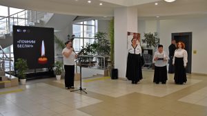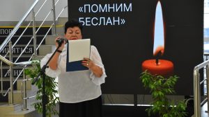 В память о погибших была объявлена минута молчания. Сотрудники библиотеки напомнили хронологию событий в Беслане. Прозвучали патриотические стихи и песни.