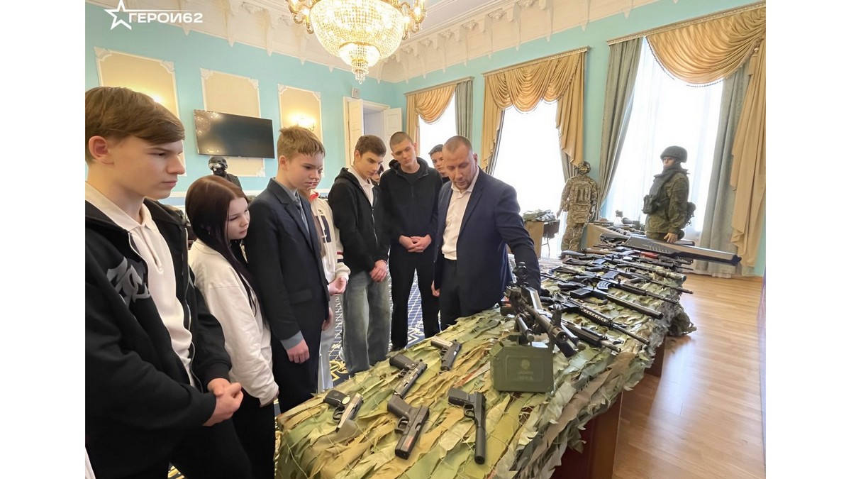 В Рязанской областной Думе для школьников организовали выставку снаряжения. Об этом сообщает телеграм-канал проекта «Герои62».