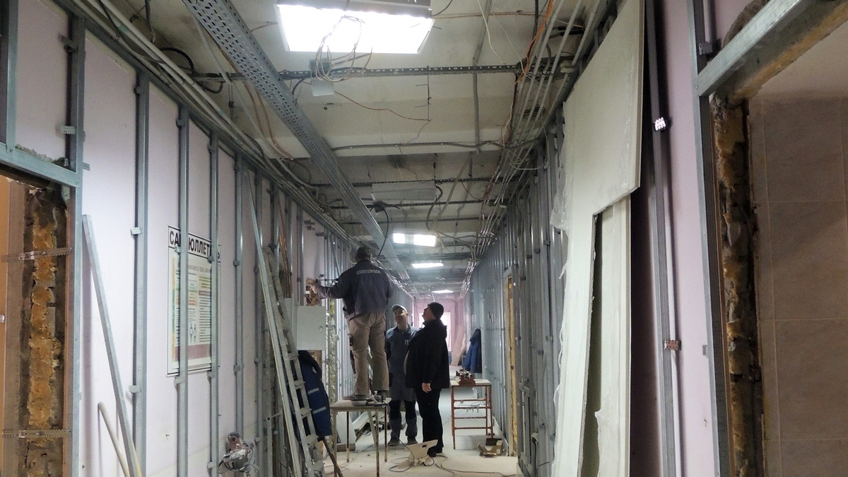 Сейчас рабочие уже заменили электрическую проводку, установили новые отопительные радиаторы и выполнили перепланировку. Оказание медицинской помощи не прерывается.
