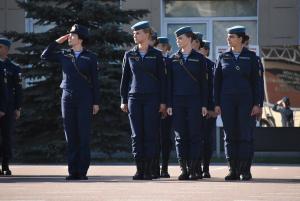 Курсанты и офицеры прошли торжественным маршем по плацу.