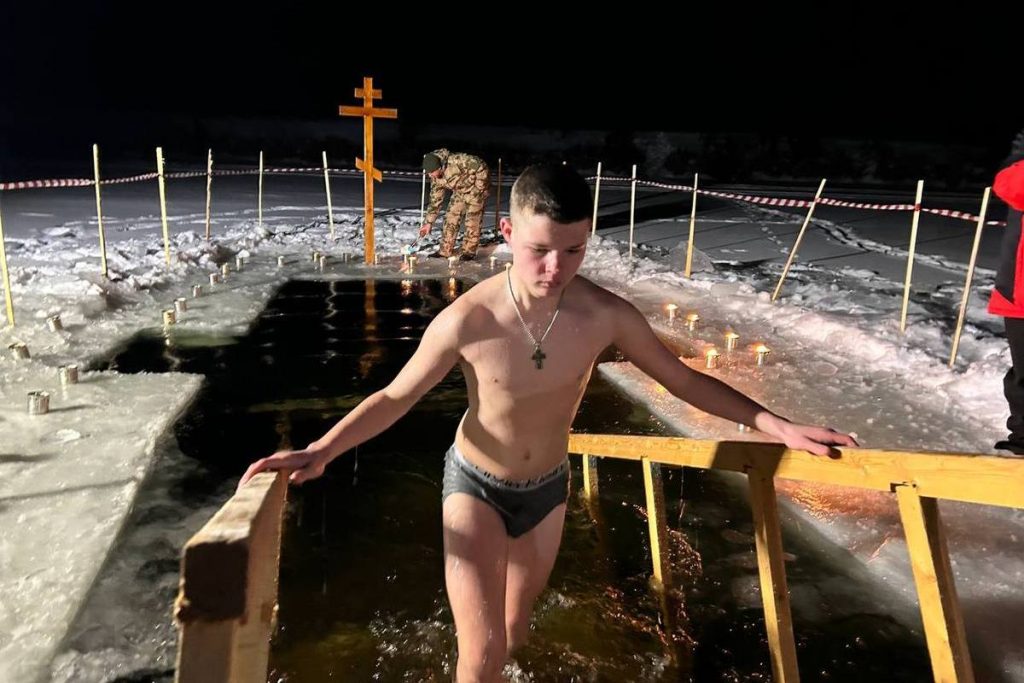 По его словам, иордань оборудовали на озере Отока. В воду вела деревянная лестница с перилами. Дорожку к ней выстлали сеном, чтобы у верующих не мерзли ноги. Для переодевания подготовили отапливаемую зону, а после омовения можно было выпить горячий чай с печеньем. На берегу разложили большой костер. Зону омовения на озере огородили сигнальной лентой и хорошо осветили.