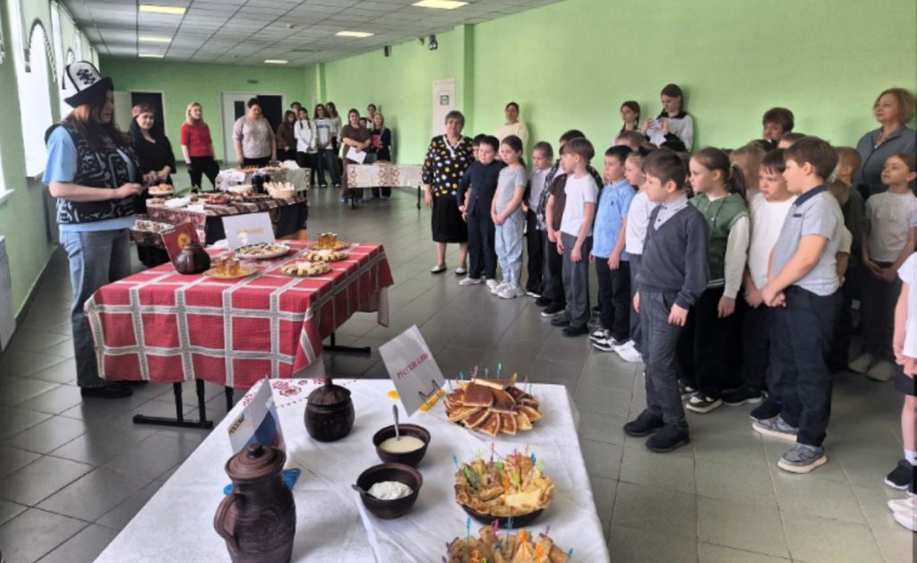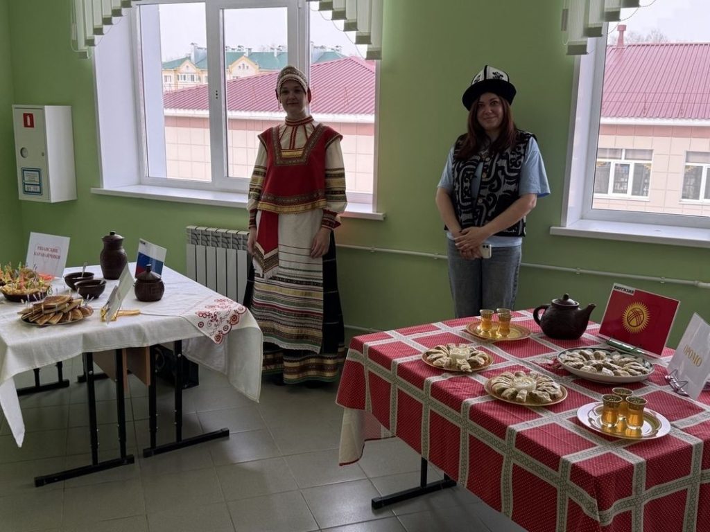 Праздничная программа стартовала в начальной школе, где прошла кулинарная ярмарка. Родители учеников не только принесли угощения, но и рассказали о том, где готовят эти блюда, какие кулинарные секреты используют при приготовлении и почему они так важны для людей. На ярмарке представили рязанские каравайчики, блины мордовские и вьетнамские, киргизское оромо, армянскую долму и люля-кебаб, итальянские брускетты и русские пироги с традиционными начинками, а также татарский чак-чак.