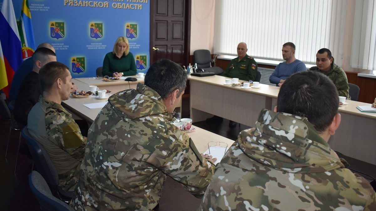 В беседе участвовали начальник сектора социальной защиты населения по Рыбновскому району Галина Венгриняк, куратор участников СВО Ольга Воробьева, координатор Государственного Фонда «Защитники Отечества» Екатерина Пашина, военный комиссар района Сергей Кравченко, инструктор пункта отбора на военную службу по контракту.