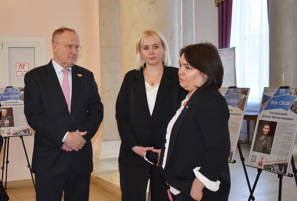В фойе открыли выставку «Все СВОИ», посвященной Героям земли Рязанской, погибшим и участвующим в специальной военной операции. В экспозиции представлено более 30 фотографий наших героев, рядом с каждым портретом –история из жизни и службы военных, часть сведений обнародована впервые.