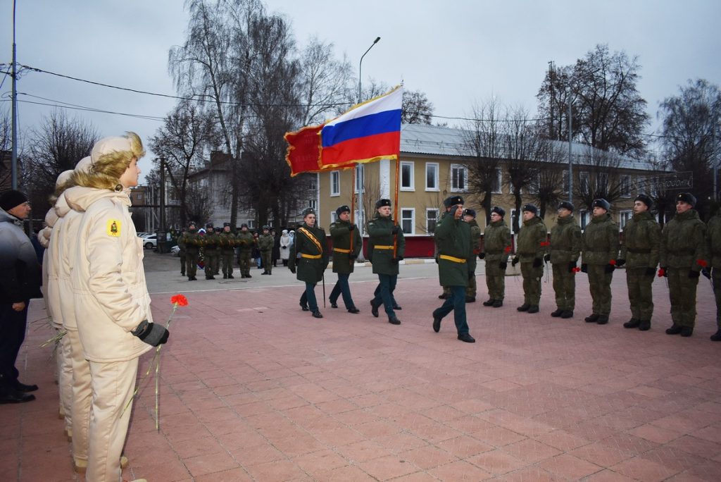 Память погибших героев почтили минутой молчания. Военнослужащие войсковой части, юнармейцы и жители города возложили к мемориалу памятную гирлянду и цветы.