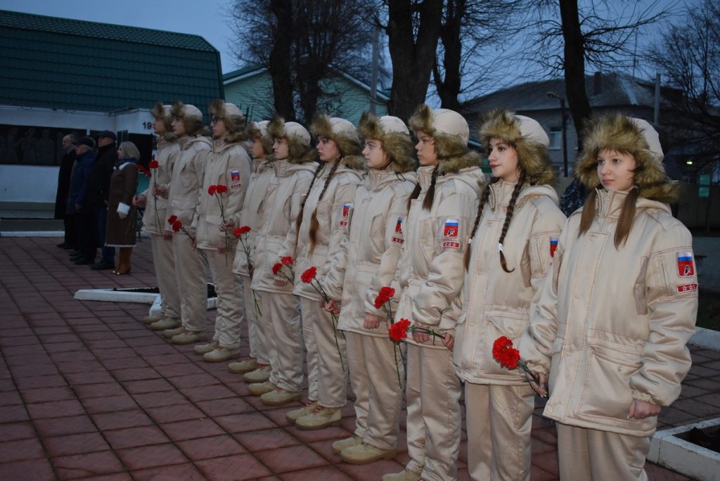 Почтить память погибших собрались сотрудники администраций, военнослужащие войсковой части 98531 и юнармейцы Рыбновской школы № 1.