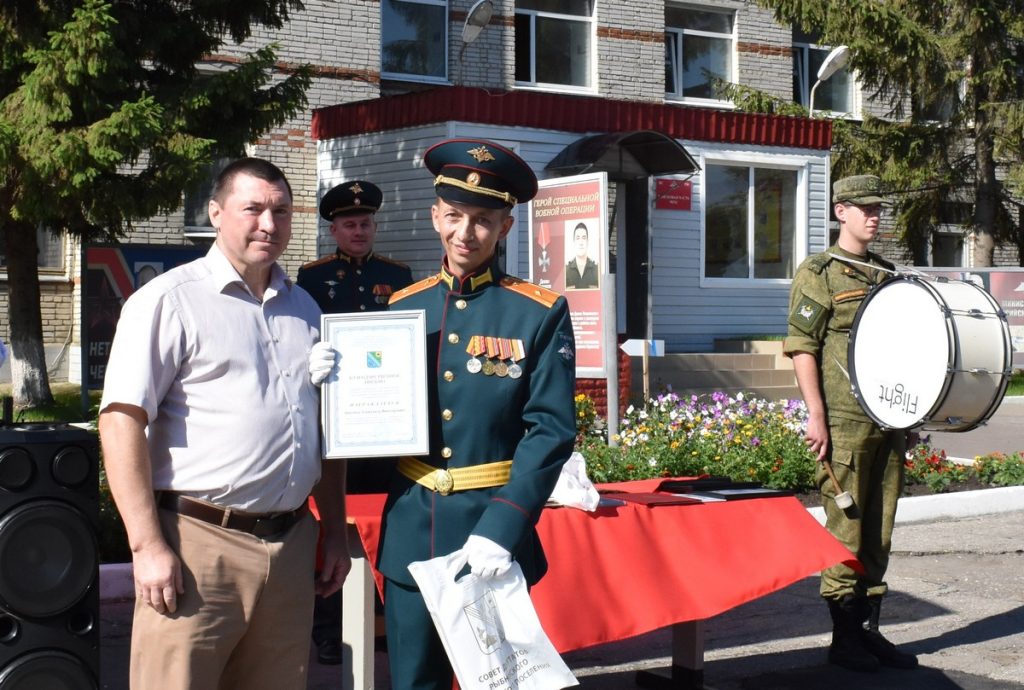 В торжественной обстановке военнослужащим батальона объявили благодарности за образцовое выполнение служебных обязанностей, вручили грамоты и присвоили очередные воинские звания.