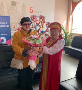 Потом объявили конкурс частушечников. Начали солистки хора, а потом подхватили зрители. Активным участникам частушечного батла Надежде Клубковой, Наталье Плюхе, Валерию Гоголеву, Светлане Печейкиной и баянисту Юрию Гуслякову вручили сладкие призы – чайные букеты.