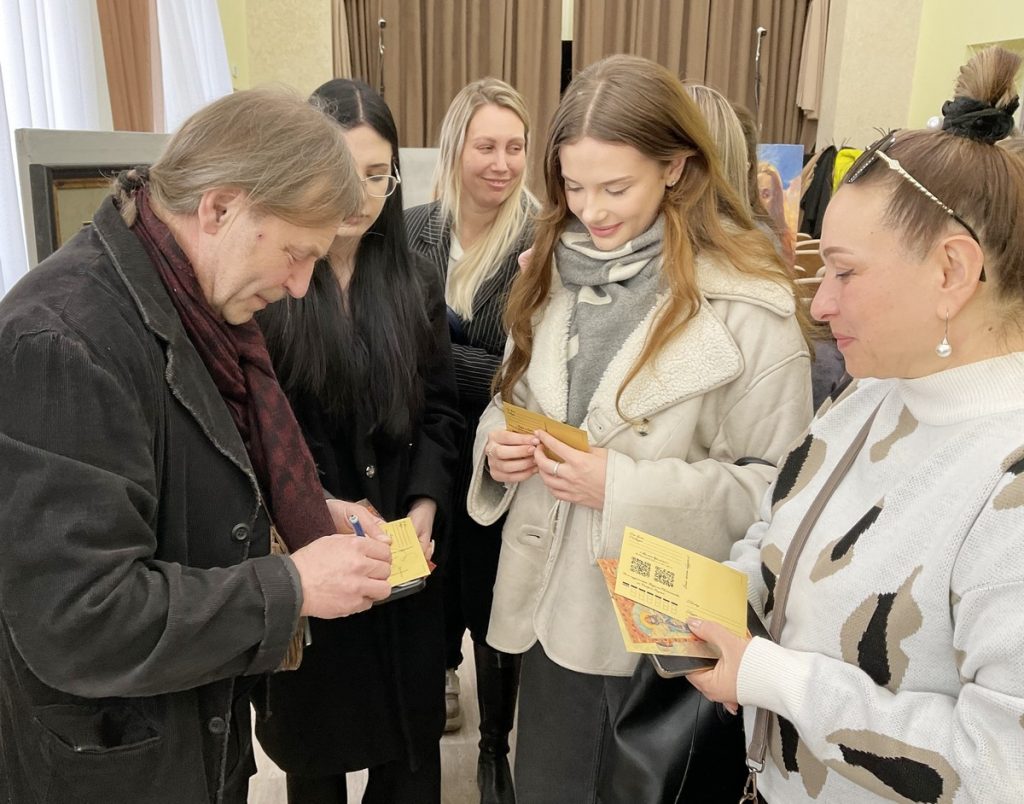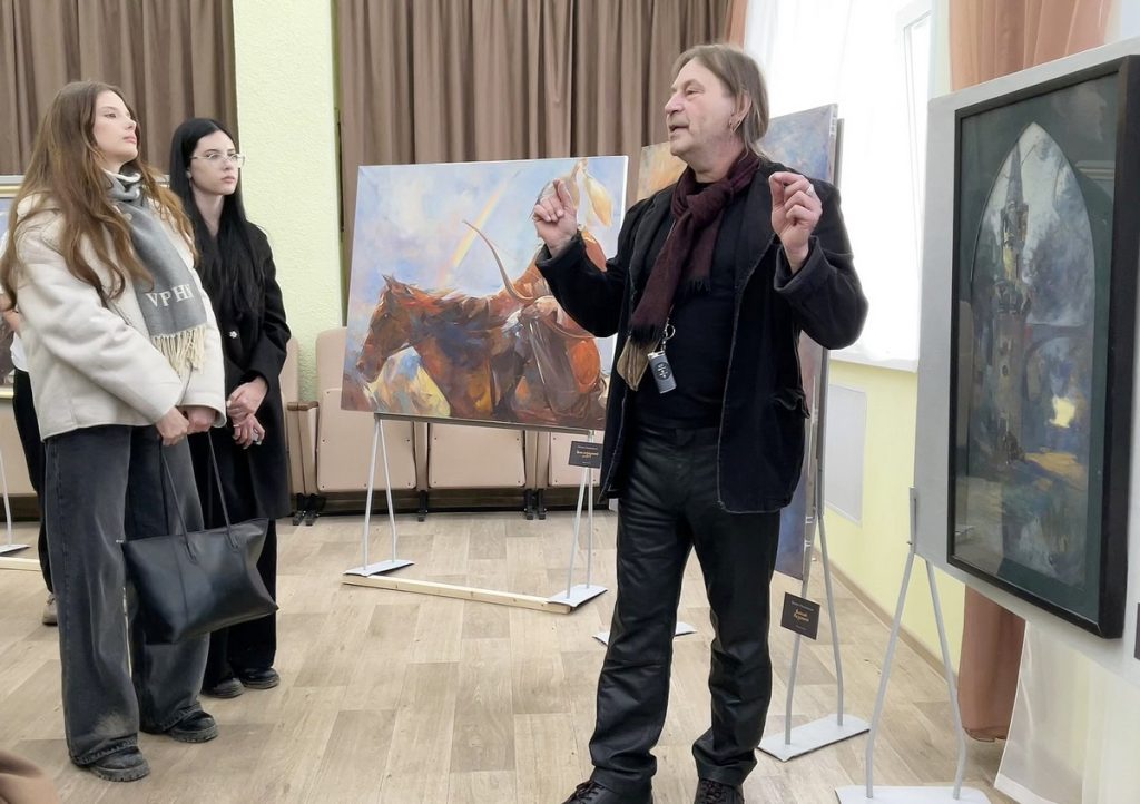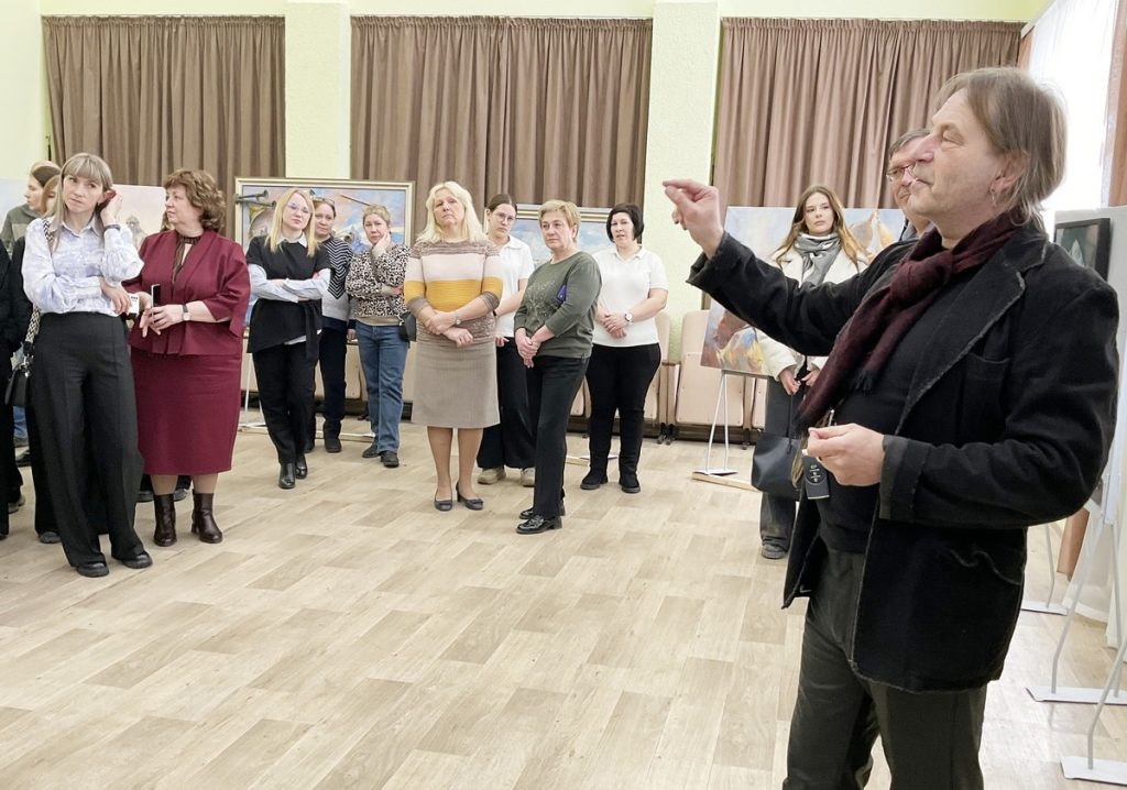 В день открытия, 24 марта, выставку посетили сотрудники управления культуры и туризма округа и ученики Рыбновской детской школы искусств. Художник подробно рассказал о написании каждого полотна и раздал на память свои открытки с автографом.