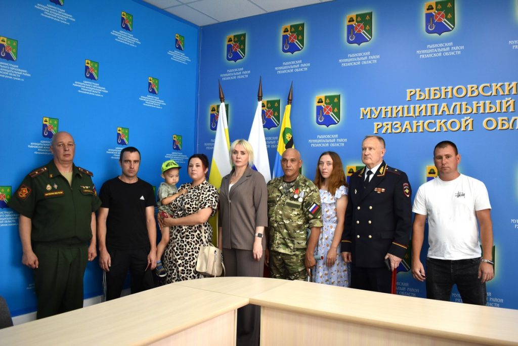 30 июля в администрации Рыбновского района прошла встреча с участниками специальной военной операции и их семьями. Глава администрации района Елена Минкова и заместитель председателя Рязанской областной Думы Николай Макариков вручили награды бойцу и членам семей погибших воинов.