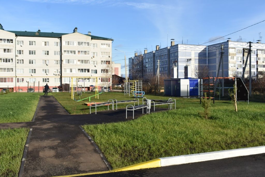 У дома благоустроенная огороженная территория с озеленением, зоной для отдыха и детской площадкой со спортивными тренажерами, предусмотрены парковочные места.