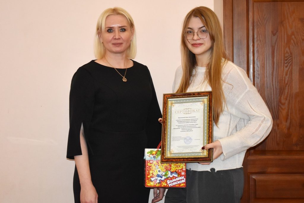 Стипендиатов поздравила глава администрации Рыбновского района Елена Минкова и подарила сладкие подарки:
