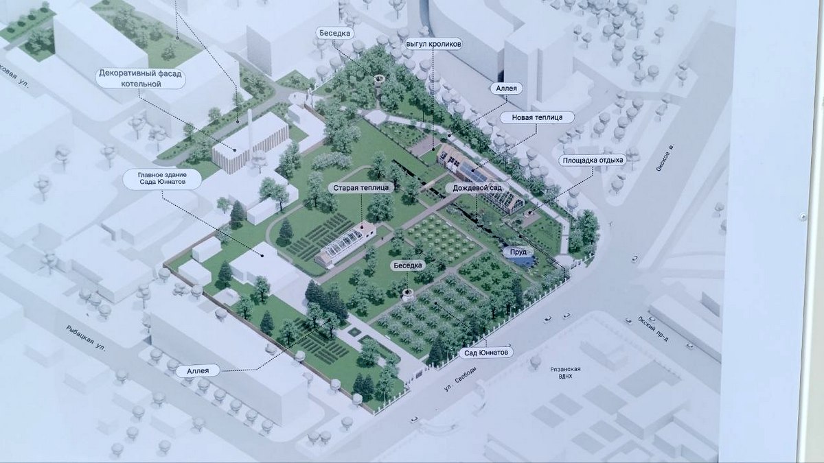 В рязанском саду юннатов во время реконструкции увеличат водоем и построят ротонду. Проект реконструкции и рендеры разместили у входа в Лесопарк.