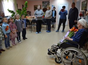 С днем рождения Клавдию Павловну поздравил директор комплексного центра Павел Жариков и воспитанники средней группы Сапожковского детского сада с воспитателями Светланой Дворниковой и Инной Щевьевой. Дошколята подарили бабушке цветы и спели для нее песни военных лет.