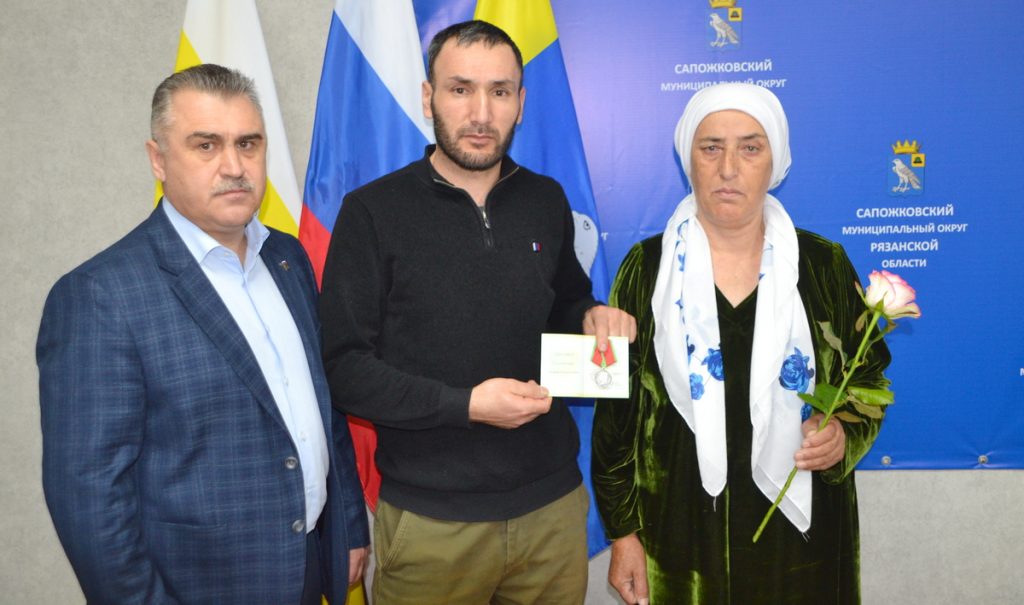 24 апреля глава Сапожковского округа Алексей Кириллов вручил медаль Суворова и ордена Мужества родственникам бойцов, которые погибли в зоне СВО. Медалью Суворова посмертно наградили Сулаймоншо Давлатова, а орденами Мужества – Андрея Драскова, Алексея Череповского и Виктора Губарева.