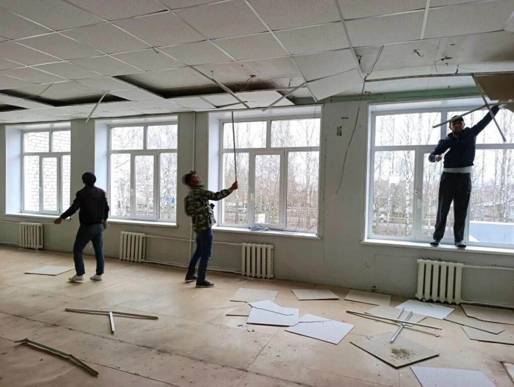 «По условиям контракта ремонт школы мы должны завершить к началу нового учебного года, до 1 августа. Сейчас подрядная организация ООО «Класс-Р» делает демонтаж старых конструкций: потолков, полов, электропроводки, отопления, вентиляции».