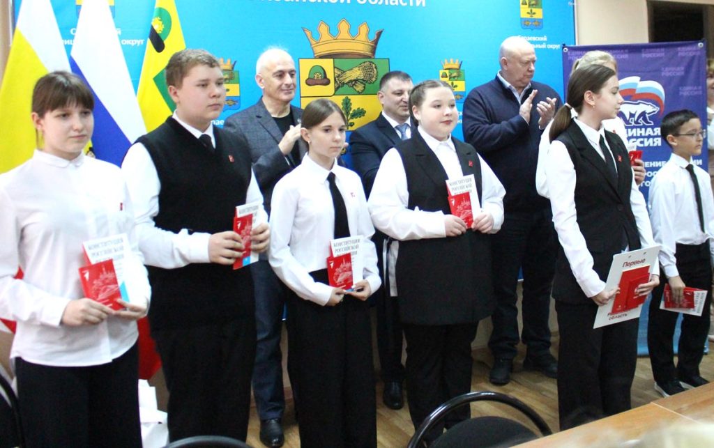 На этой встрече также вручили паспорта в рамках проекта «Мы граждане России». Паспорта и экземпляры Конституции России 7 школьникам вручили Андрей Красов и Валерий Дмитриев.