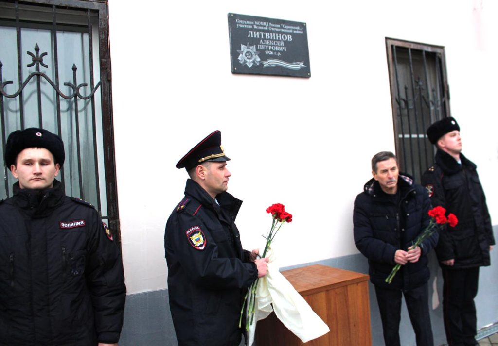7 ноября в Сараях в торжественной обстановке открыли мемориальную доску Алексею Петровичу Литвинову, подполковнику милиции, ветерану органов внутренних дел. На открытии присутствовали сотрудники Сараевского межрайонного отдела полиции, ветераны ОВД, представители районной власти, сын Николай и внучка Ирина. Мемориальную доску установили на здании отдела полиции.