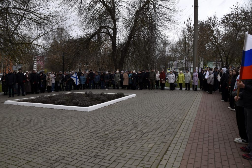 Собравшиеся возложили венки и цветы к памятнику, почтили память ушедших из жизни минутой молчания. Настоятель Казанского храма отец Николай Бабачук провел панихиду по усопшим и пожелал здравия ныне живущим.