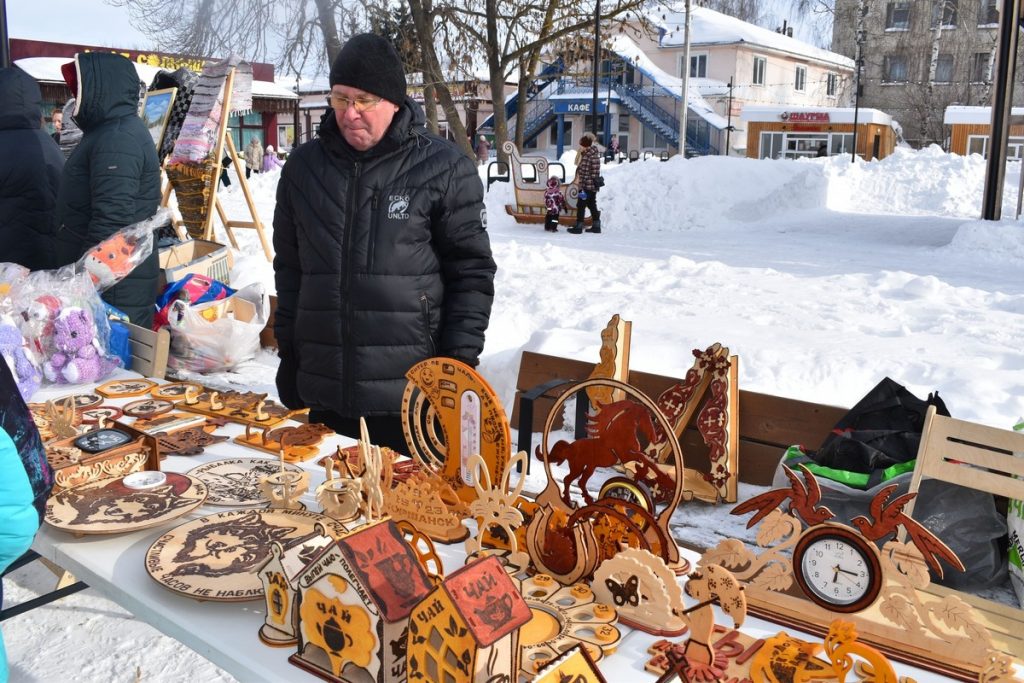 Рядом с блинными рядами расположилась выставка-ярмарка декоративно-прикладного творчества. Свои работы представили местные мастера.