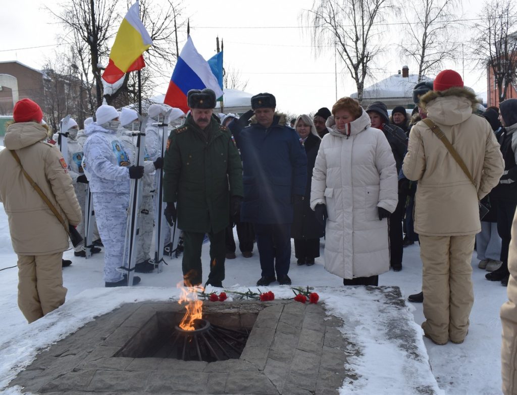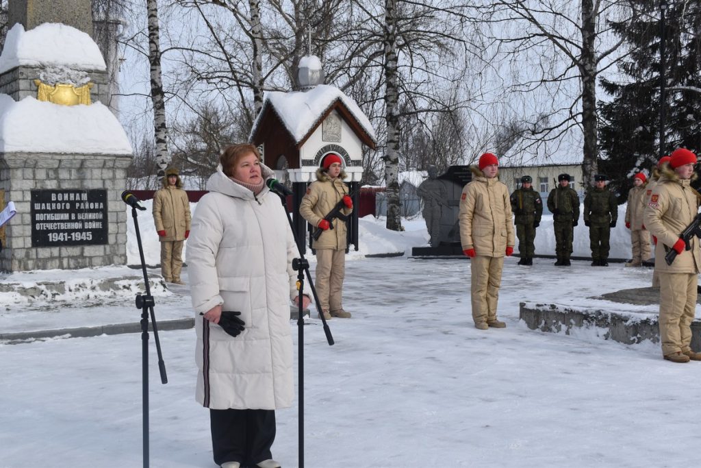 12 февраля в Шацке прошел митинг. Курсанты, представители администрации, ветераны и жители возложили цветы к Вечному огню и к доскам памяти воинов, павших в ходе СВО.