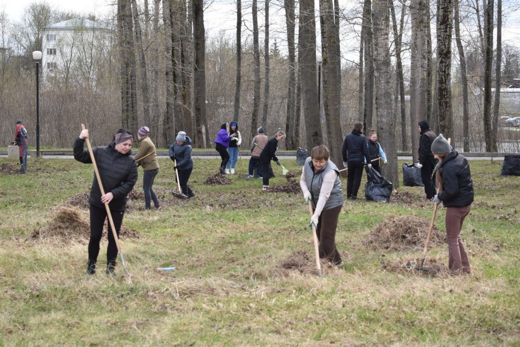 Сотрудники администрации, предприятий и организаций, школьники, волонтеры и жители поселка убрали в парке мусор, сухую траву и листья.
