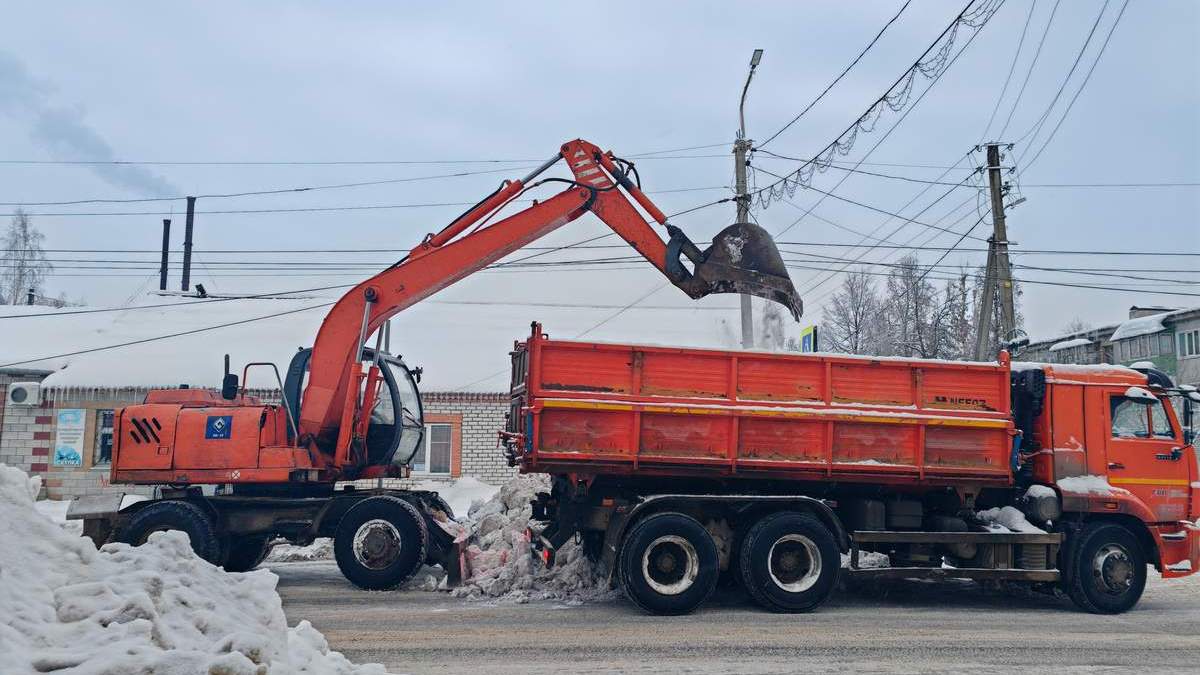 Работники Шиловского МУПТЭС убирают снежные завалы с улиц и площадей районного центра.