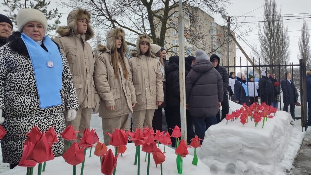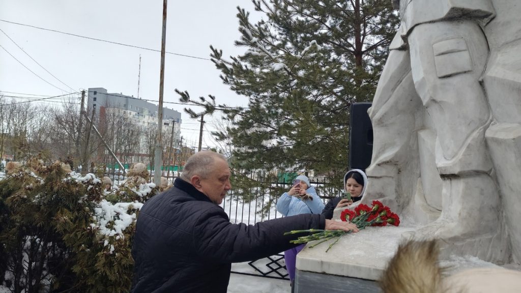 Память всех погибших в Афганистане и в локальных войнах почтили минутой молчания. Студенты выпустили в небо черные шары, а школьники выложили на снегу символичные аллеи из красных тюльпанов. В завершение участники митинга возложили цветы к мемориалу.