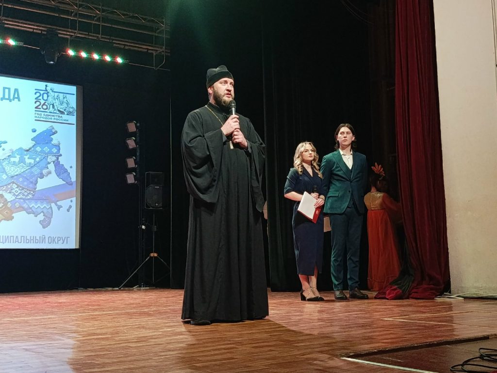 С приветственной речью к сидящим в зале обратился секретарь Скопинского Епархиального управления иерей Антоний Русанов. Он поздравил всех от имени епископа Скопинского и Шацкого Питирима и отметил: