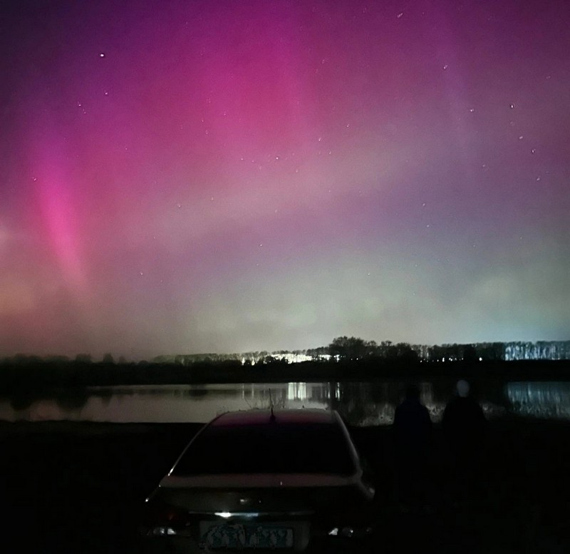 «Мой сын был с друзьями на пруду за нашим селом. звонит и говорит: «Мам, тут северное сияние!». Я подумала, что он шутит. Но сын в подтверждение прислал фото, на котором было небо необыкновенной красоты. Мы с мужем поехали туда и действительно увидели непривычное для наших краев зрелище, которое раньше видели только в книжках и по телевизору. Начали фотографировать. Переливы были от зеленоватого до ярко-малинового цвета. Сияние длилось всего несколько минут. Потом краски стали все бледнее и небо приобрело привычный цвет».