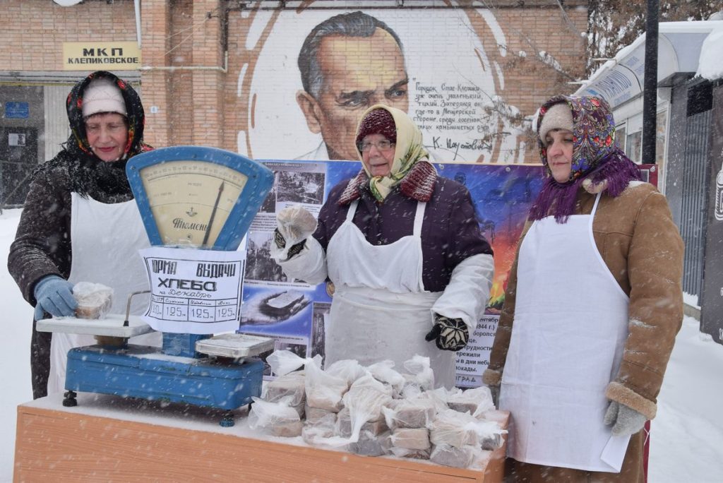 125 граммов хлеба – минимальная норма на человека в день — была установлена в то трудное время. Участники акции не просто проходили мимо, останавливались, общались, некоторые вспоминали своих родственников – очевидцев военных событий.