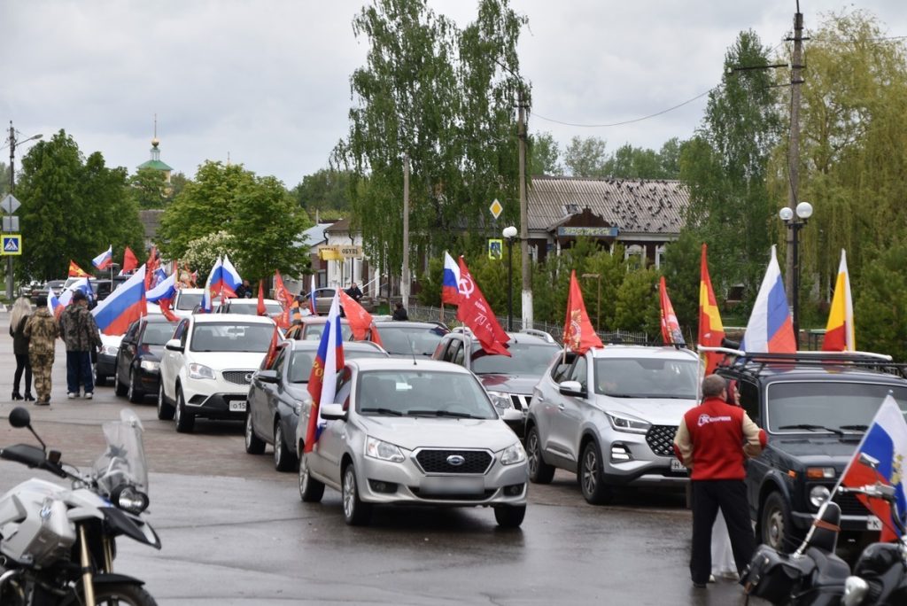 10 мая на площади Ленина в Спасске собрались жители и гости города и сельских поселений. Они украсили свои автомобили флагами России и Рязанской области, знаменами Победы и георгиевскими ленточками. Таже многие прикрепили в автомобилях портреты своих ветеранов.