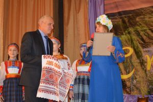 Затем выступили ученики Гребневской школы. Педагоги вручили Алексею Трепалину каравай и благодарственное письмо от Гребневского филиала школы «Рязанские сады» за оказание помощи.