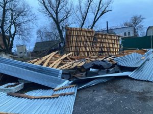 В Ухолове сильный ветер сорвал крышу на административном здании