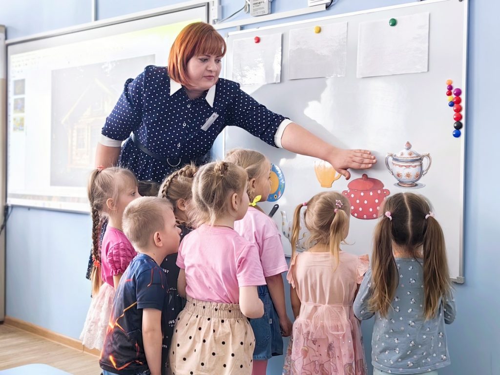 Первое место присудили Светлане Артемовой. Она провела занятие с детьми средней группы на тему классификации посуды по принадлежности в быту и по материалам, из которых она изготовлена, связав урок со сказкой Корнея Чуковского «Федорино горе».