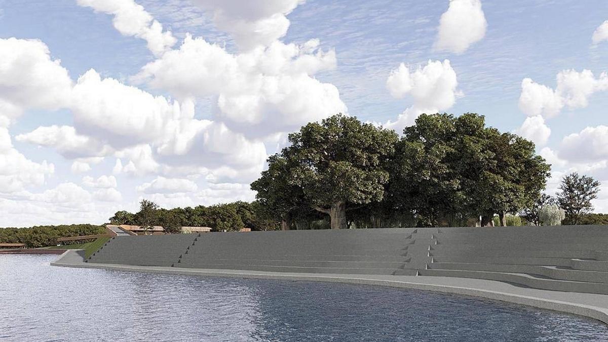 Проект благоустройства прибрежных зон разрабатывают по поручению губернатора Павла Малкова. На фото – урбанистическое решение с пешеходной дорожкой, фигурной оградой, площадками у воды, благоустроенной пристанью.