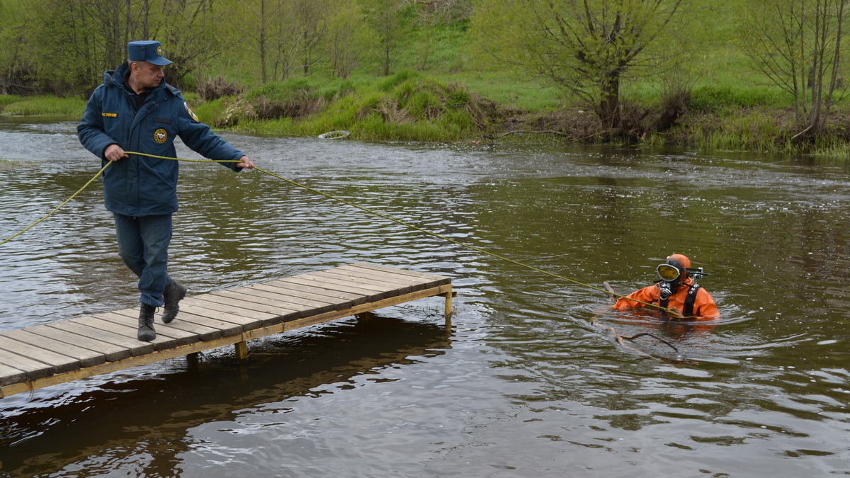 Специалисты Рязанской областной поисково-спасательной службы на воде обследовали дно реки Пёт. Это место массового отдыха населения в Пителинском районе.