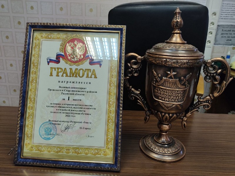 До этого момента (за итоги работы первого полугодия) кубок находился в Скопинском военкомате.