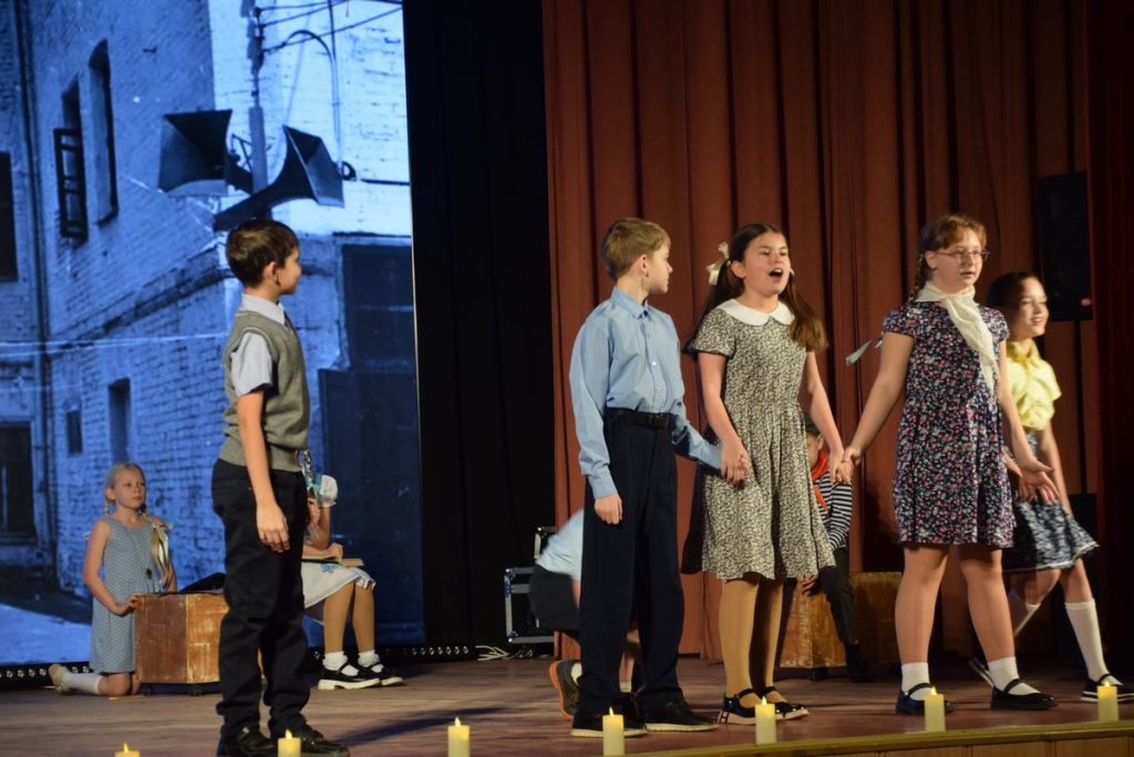Драматическая игра юных актеров переплелась с танцевальными номерами от коллективов «Ритм» (руководитель Надежда Агафонова) и «Даймонд» (Елена Кастюрина), также посвящённых событиям войны.