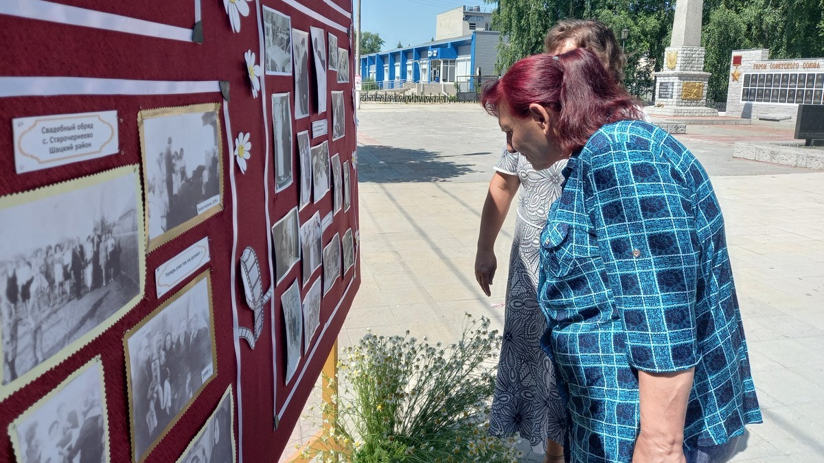 В День семьи, любви и верности работники шацкого историко-культурного центра подготовили выставку свадебных фотографий земляков. Ее расположили напротив здания центра, и каждый желающий мог остановиться и рассмотреть ее.