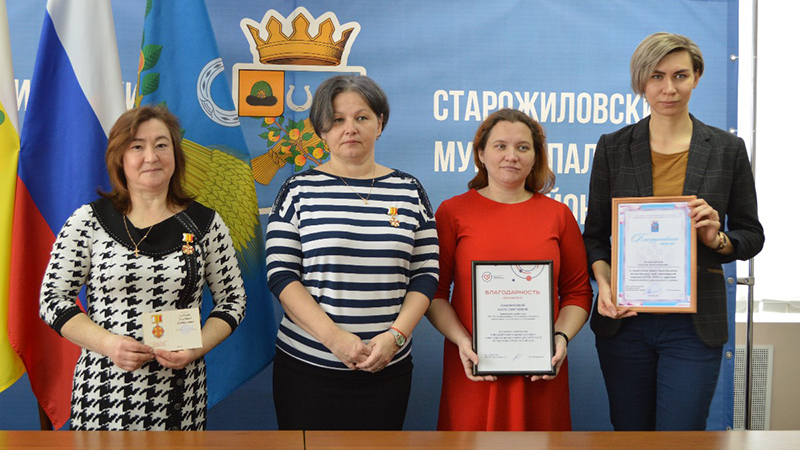 4 марта старожиловских волонтёров наградили знаками губернатора Рязанской области «За борьбу с Covid-19». Также им вручили благодарственными письмами главы администрации Старожиловского района и ресурсного центра поддержки добровольчества Рязанской области.