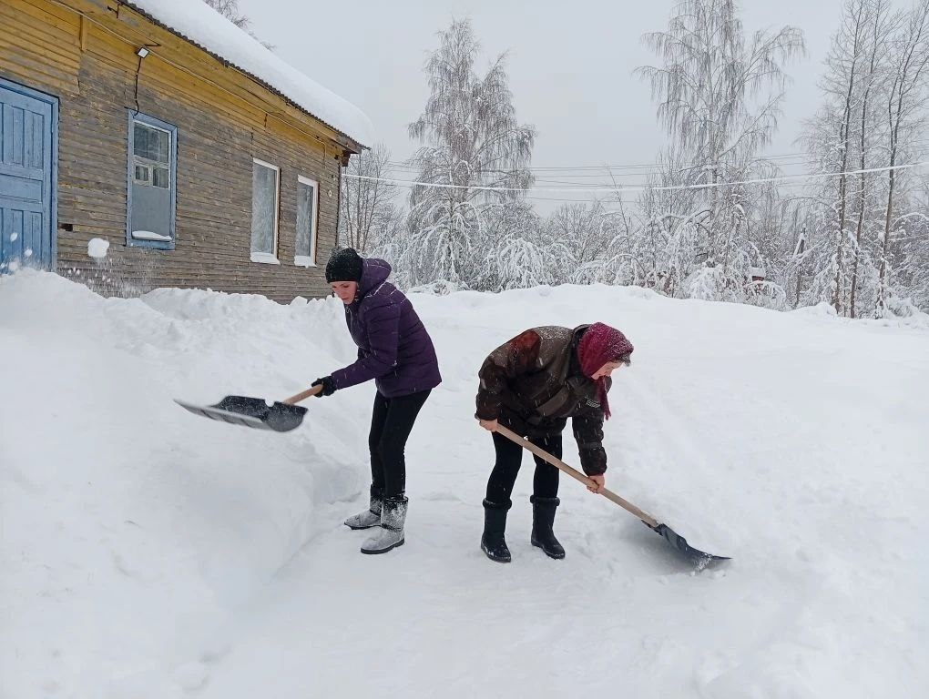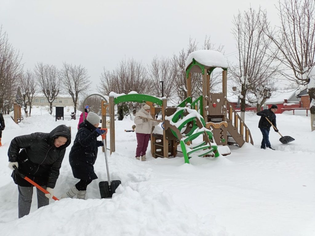 Вооружившись лопатами, горожане очистили от снега пешеходные тропинки, территории возле своих организаций, площадки для отдыха детей.