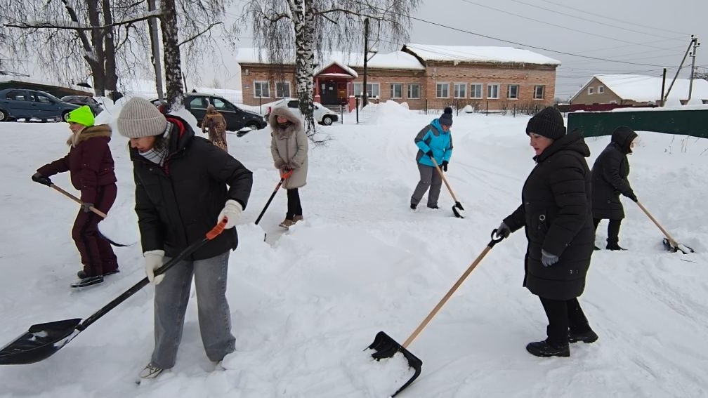 Вооружившись лопатами, горожане очистили от снега пешеходные тропинки, территории возле своих организаций, площадки для отдыха детей.